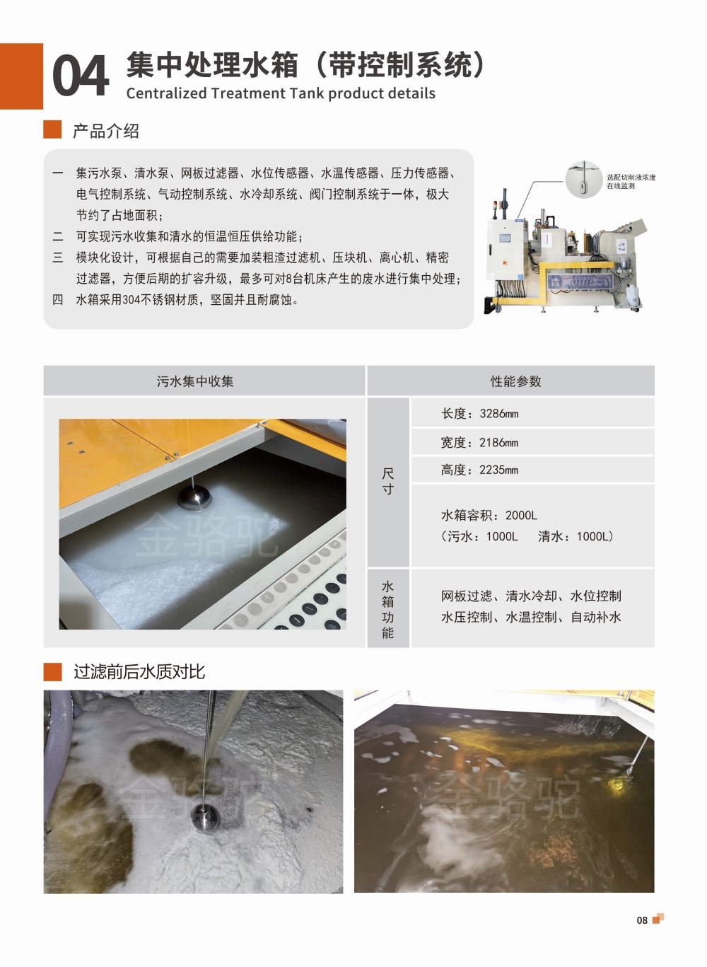 1、水箱功能:網(wǎng)板過(guò)濾、清水冷卻、水位控制、水壓控制、水溫控制、自動(dòng)補水;